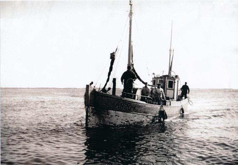 Báturinn Gullfoss og fjórir menn, ekki nafn á nema einum númer þrjú Guðlaugur Eggerts.