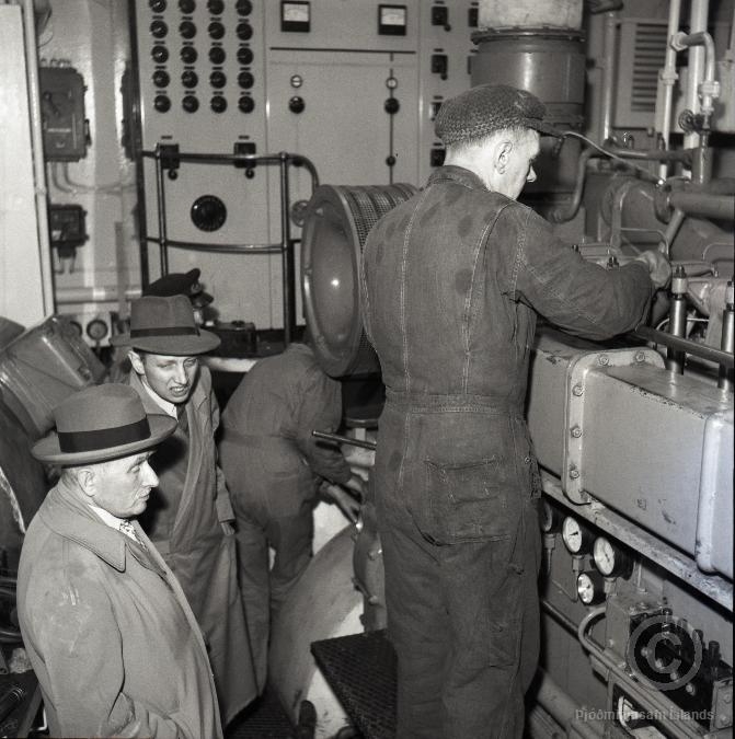 „Maðurinn sem stendur við vélina er mjög líklega Hilbert Jón Björnsson 1914-1974 afi minn. Hann byrjaði í Maí 1955 hjá Reykjavíkurhöfnum og leysti af á Magna dráttarbát.“ (ÞH 2025)