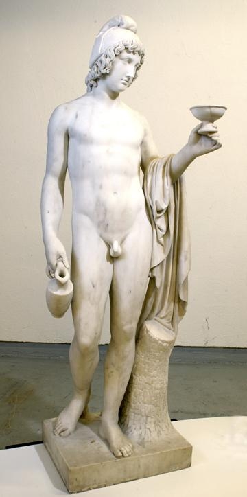 Ganymedes var konungssonur frá Tróju og var allra manna fríðastur. Júpíter sendi því örn sinn til að ræna honum og færa hann guðunum á Ólympos þar sem hann ásamt Hebu skyldi skenkja þeim ódáinsvín. Veturinn 1802-4 pantaði Irina Vorontsov, rússnesk greifafrú, fimm höggmyndir hjá Thorvaldsen og skyldi efni þeirra vera úr grísku goðafræðinni, m.a. úr sögunni um Ganymedes. Í fyrri gerð myndarinnar af Ganymedes stóð örninn við vinstri fót hans, en í seinni gerðum úr marmara eins og þeim sem eru í Thorvaldsensafni (keypt þangað 1920 frá Englandi) og í Listasafni Íslands er erninum sleppt. Það eintak sem er í eigu Listasafns Íslands stóð ófullgert í vinnustofu Thorvaldsens þegar hann lést, en síðar var lokið við að höggva myndina í marmara fyrir safn hans. Árið 1922 var verkið selt Johan Hansen aðalræðismanni sem gaf það íslenska ríkinu árið 1927. (B.J. Bertel Thorvaldsen 1770-1844. Sýning á Kjarvalsstöðum í Reykjavík. 1982).