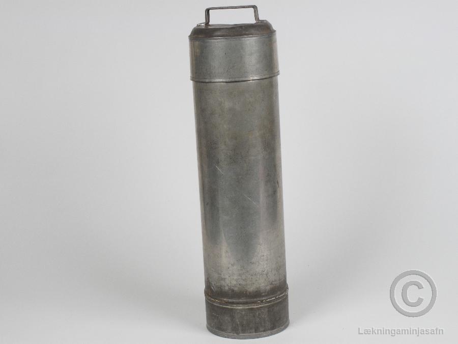 Jánhólkur t.a. sótthreinsa í langar slöngur og leggi með formalíni. í botni hólksins er hólf afgirt með net. Í hólfið hefur verið sett formalínpilla og svo hvað?sett á heita hellu?