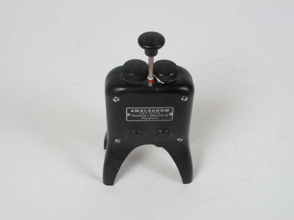Amalgamskammtari. Kvikasilfur er enn í blandara.