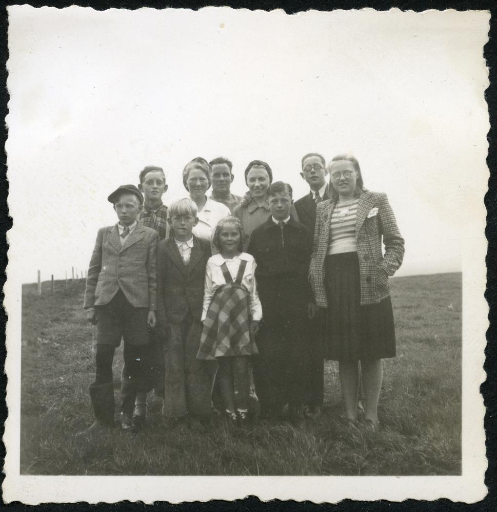 Hópur fólks stendur á flöt til hópmyndatöku. Við myndina er skrifað: Hópmynd..
