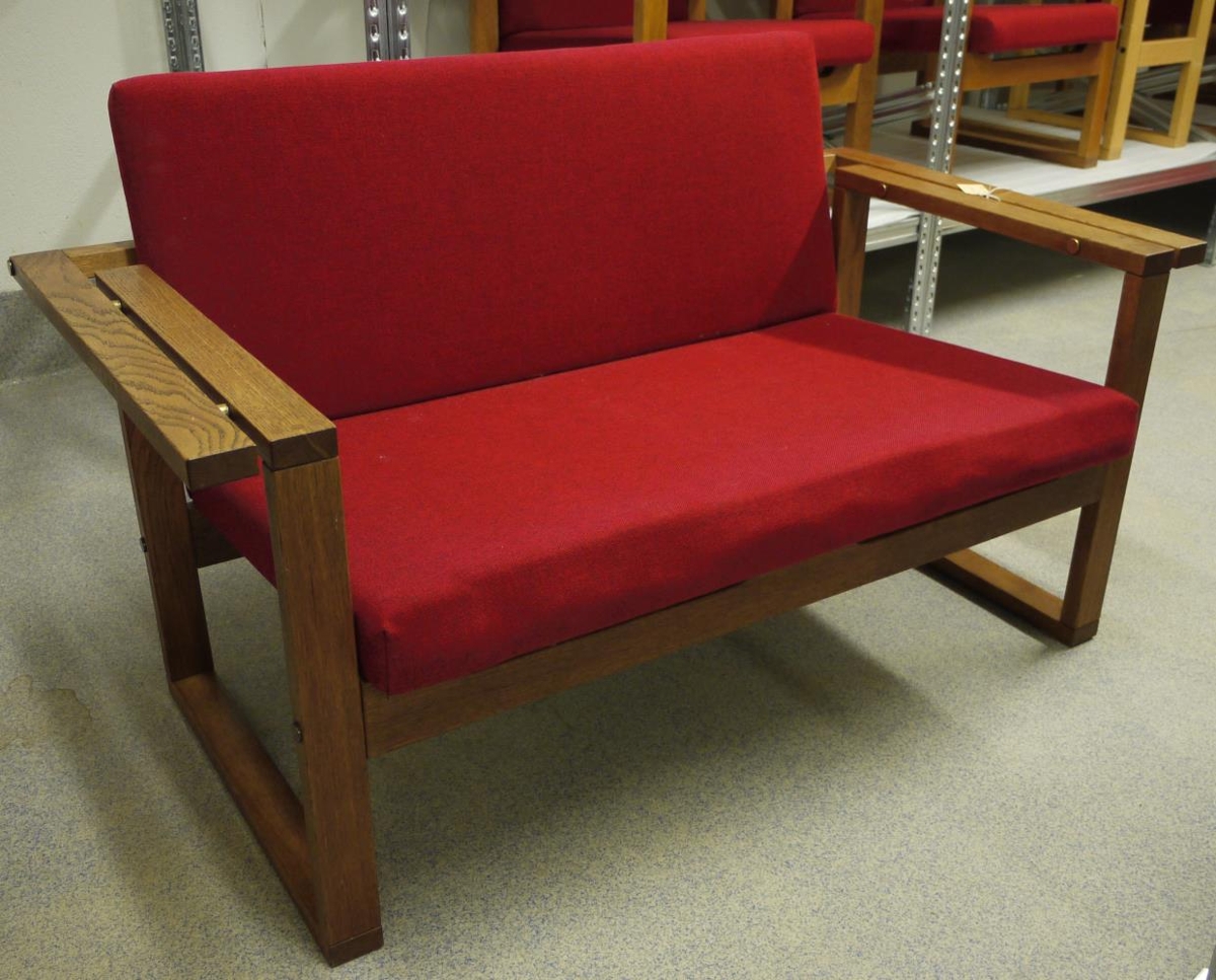 Tveggja sæta Inka sófi. Grind úr eik og seta með rauðu ullaráklæði. Ekki er um upprunalegt áklæði að ræða, en þess var gætt að áklæðið væri íslenskt þegar skipt var um. Seta og bak hanga saman og liggja laus á grind. Hægt er að taka það auðveldlega af og grind í sundur.