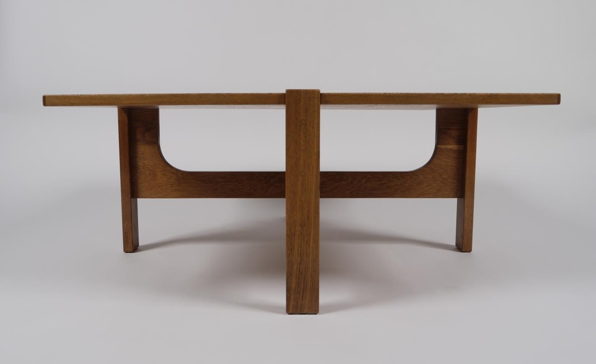 Sófaborð úr Inka línunni eftir Gunnar Magnússon. Smíðað úr eik. Borðplata liggur laus á fótum, einnig er hægt að taka fætur í sundur.