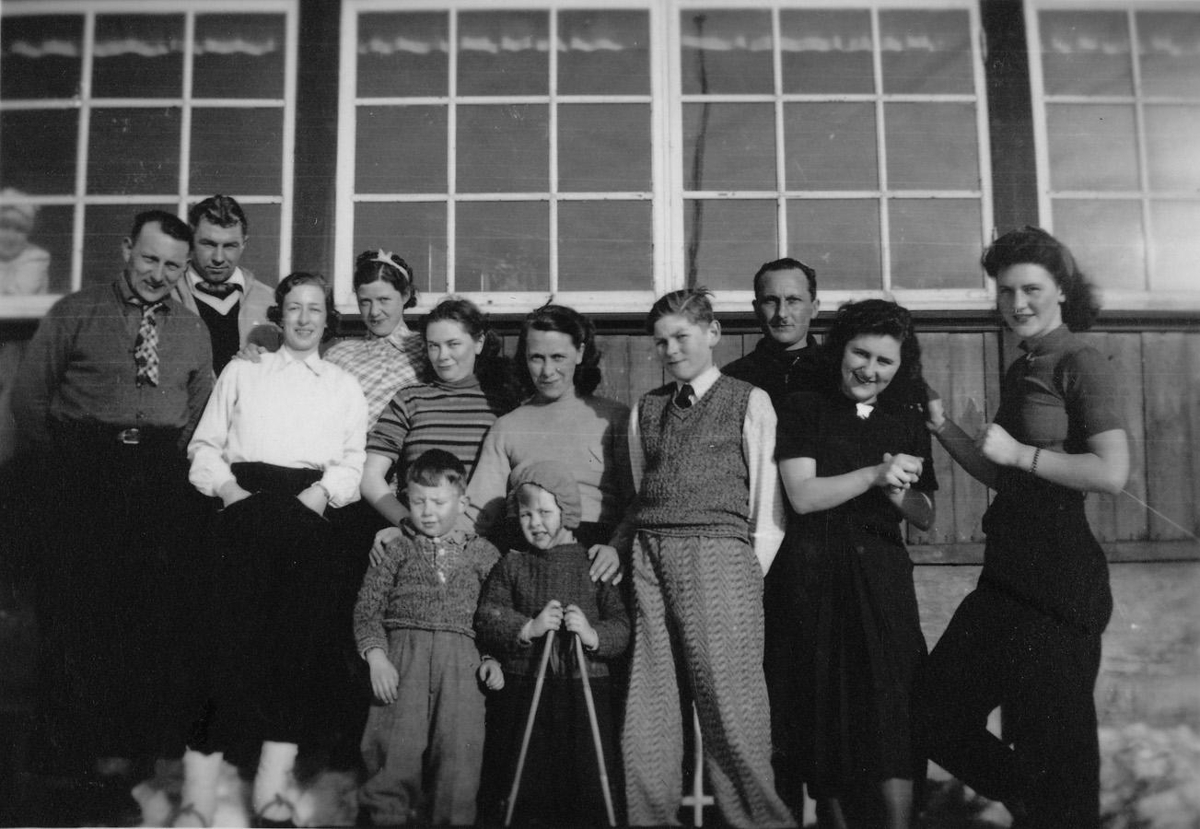 Auður Sveinsdóttir önnur frá hægri og við hlið hennar er Ásdís systir hennar. Frá ungdómsárum Auðar, 1936-1938.