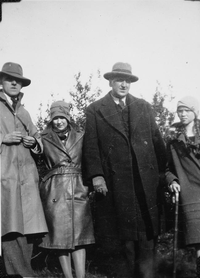 Halldór og Ingibjörg ásamt söngvaranum Eggerti Stefánssyni og Aase dóttur Jóhannesar Kjarvals á Fljótsdalshéraði 1930. Úr albúmi Ingibjargar Laxness. 3.-4. áratugur.