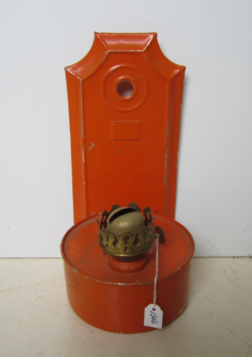 Lampi séra Einars Guðnasonar fyrrv. prests í Reykholti, Miðbraut 3, Seltjarnarnesi.Hæð lampans er 24 cm. Á stilliskrúfu stendur „English Made ¾ in w. Lampinn er úr járni rauðmálaður og hægt hengja á vegg.