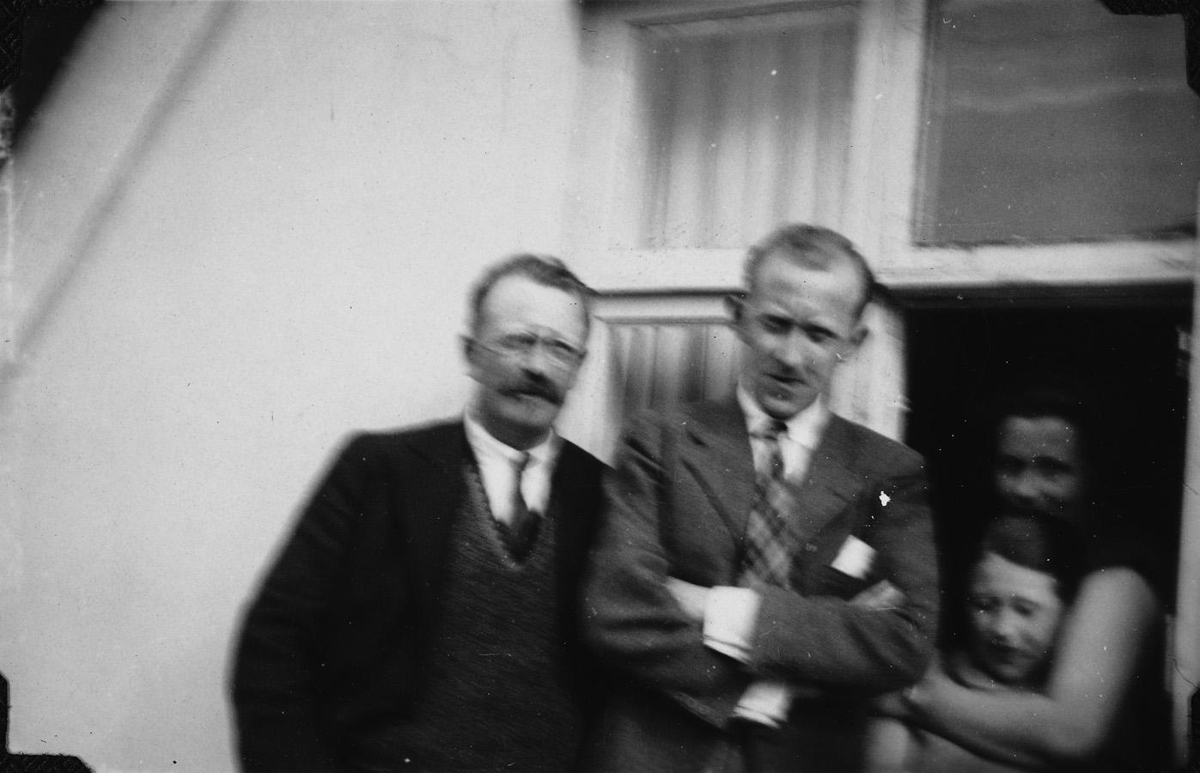 Hallbjörn, Halldór, Kristín(Kidda) kona Hallbjörns og Inga við hús Hallbjarnar og Kiddu við Spítalastíg.