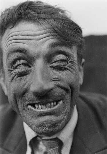 a) Jakob Sigurðsson f. 28.5. 1905 (Kobbi) bóndi á Hömrum Reykholtsdal og (b) sama mynd. Maður að gretta sig.