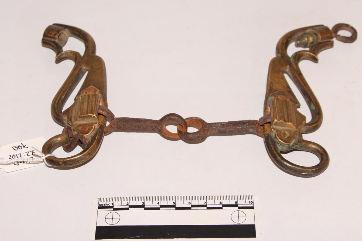 Beislisstangir úr messing. Lengd stanga er 14,5 cm, lengd méla er 13 cm og eru þau úr járni. Sigurnagli og taumlykkja eru farin af á vinstri kjálka en eru á þeim hægri. Stykki, lítið skreytt, er hnoðað yfir mélhúsið. Þær eru frekar þungar.