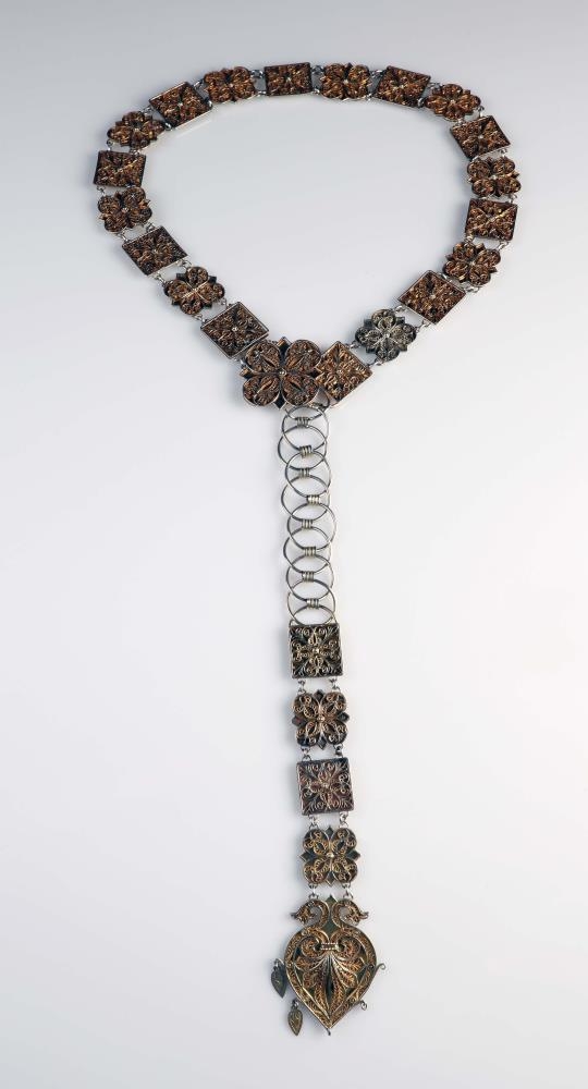 Stokkabelti úr gylltu silfri, með sprota. Beltið er eftir Sigurð Vigfússon gullsmið og fornfræðing. Það er skreytt víravirki og mynstri eftir hugmyndum Sigurðar Guðmundssonar málara. Minjar og saga, vinafélag Þjóðminjasafns Íslands, færði safninu beltið að gjöf í tilefni 150 ára afmælis þess. Eigendasaga beltisins er óþekkt.