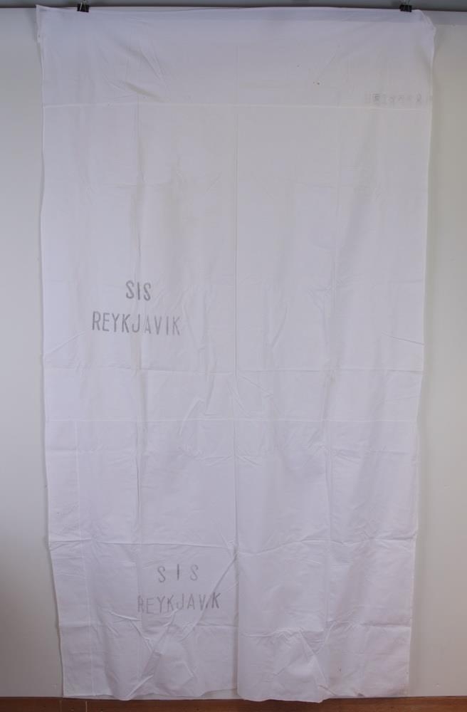Lak úr tveimur hveitipokum. Á lakinu stendur SÍS. Einnig stendur Reykjavík á tveimur stöðum.