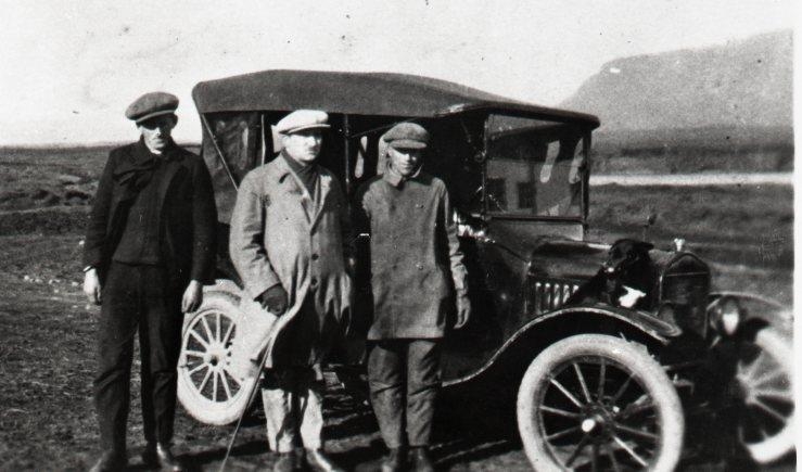 Grund. Helgi og Einar frá Grund, ásamt Lúðvík lækni og hundinum Vídó.