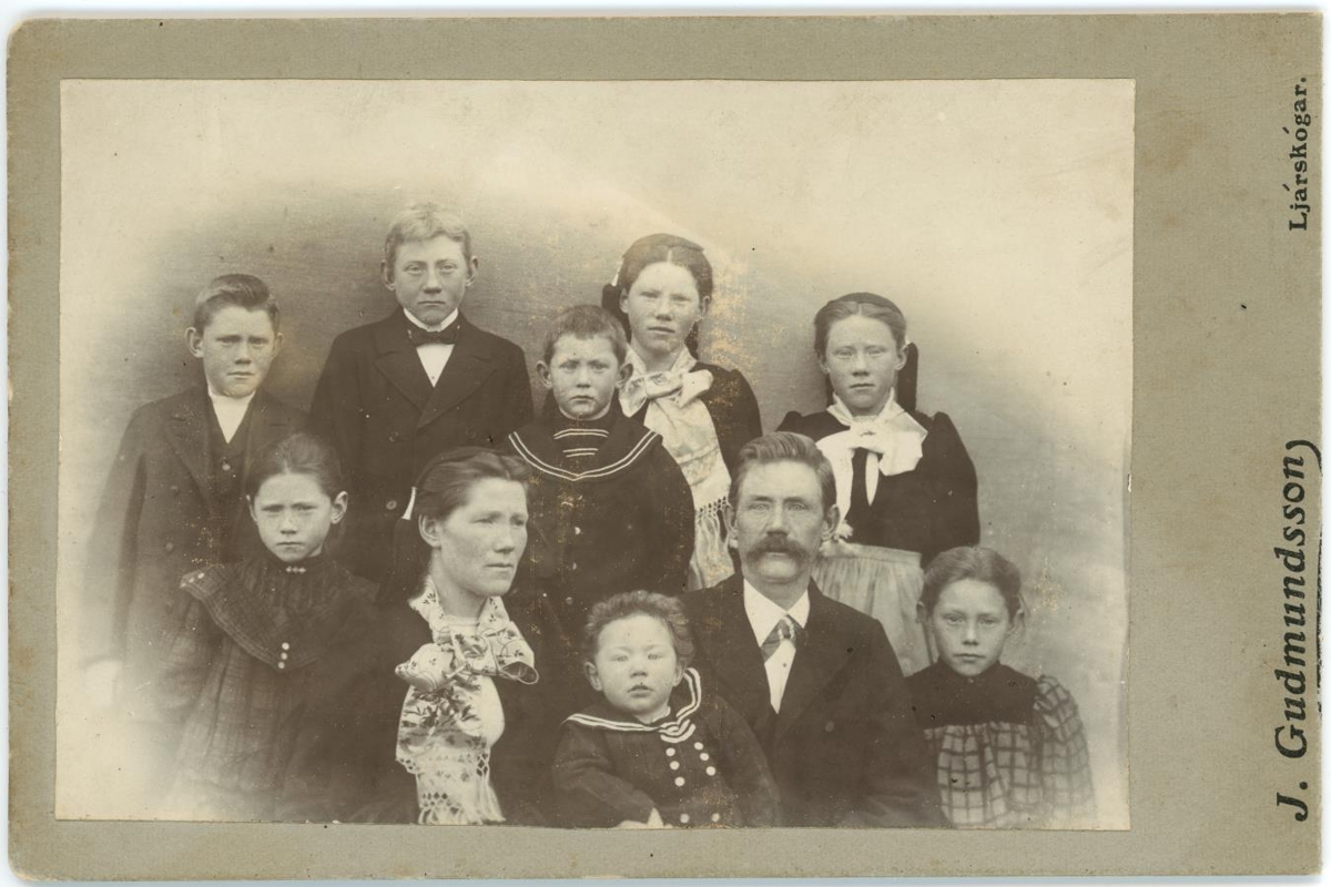 Á myndinni eru Einar og Ingiríður á Hróðnýjarstöðum ásamt börnum sínum;