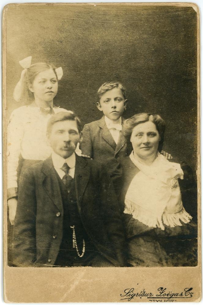 Jónas Arngrímsson og Guðbjörg Ólafsdóttir á Smyrlahóli í Haukadal með fósturbörn sín, Margréti Oddsdóttur og Óskar Jósefsson.