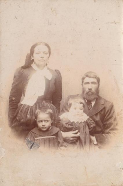 Petrína Þorgerður Kristjánsdóttir (1874-1941) og Guðni Jónasson (1875-1953) í Valþúfu ásamt tveimur elstu börnum sínum, Snorra (1904-1985) og Kristínu (1906-1992).