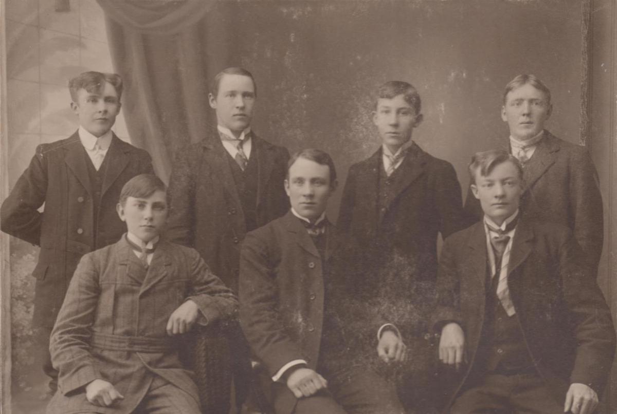 Gestur Z. Magnússon á Staðarfelli (neðri röð fyrir miðju) í hópi bekkjabræðra sinna í Gagnfræðiskólanum á Akureyri.