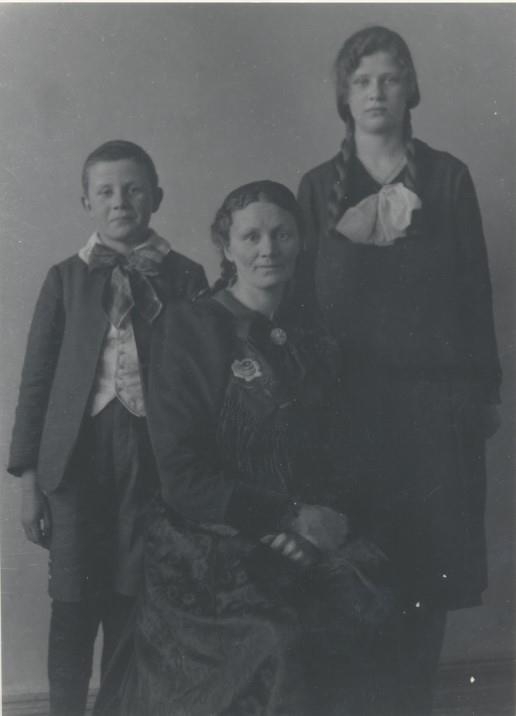 Rannveig á Eyri með börn sín Óskar og Hönnu.