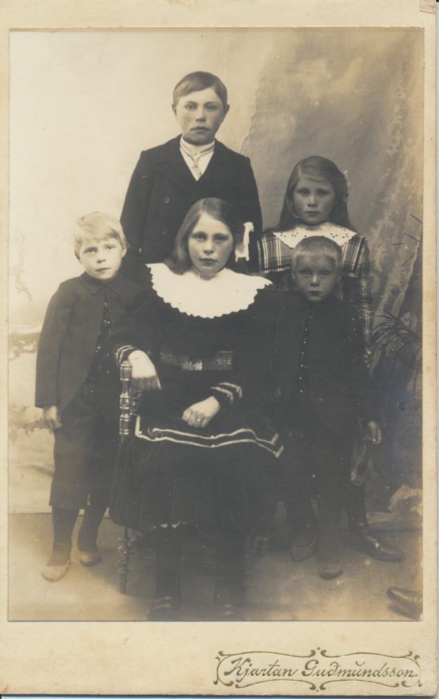 á Eyrarbakka. Neðri röð frá vinstri, Ragnar, Jónína, Gísli. Efri röð frá