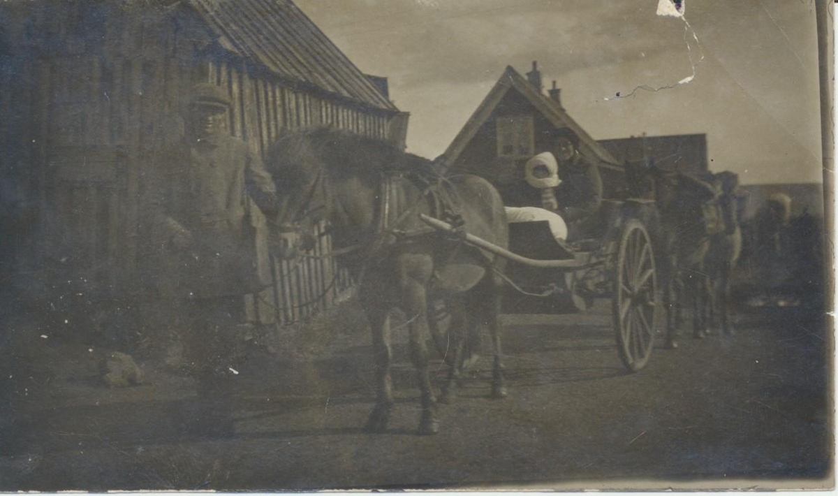 Tómas Grétar,og hestur með vagn.
