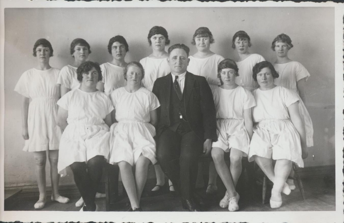 Leikfimisflokkur stúlkna. Í efri