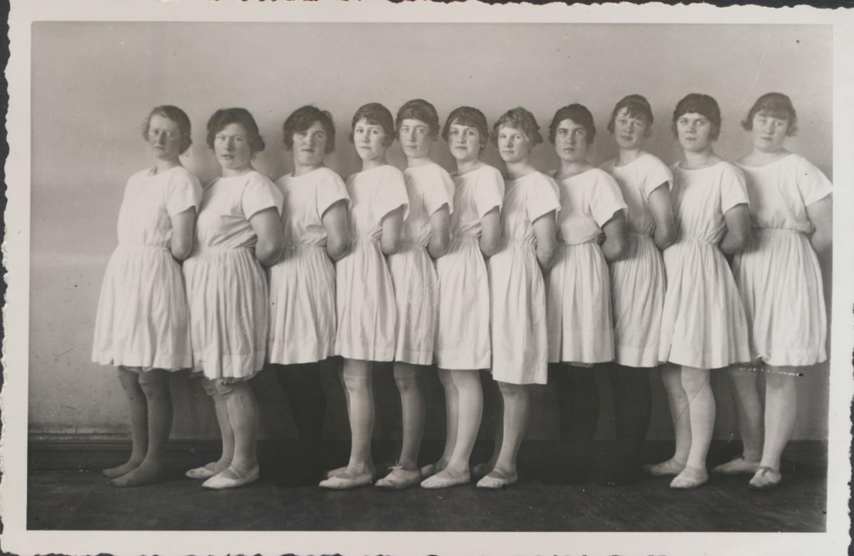 Leikfimisflokkur stúlkna. Frá vinstri