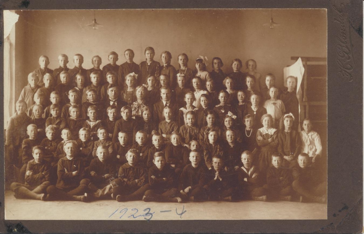 á Eyrarbakka veturinn 1923-24. Nafnalisti með myndinni í umslaginu, byrjar