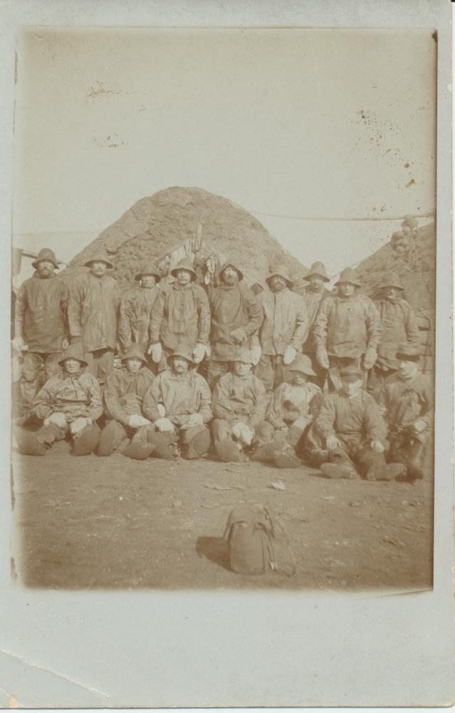 hinna gömlu sjóbúða. Formaðurinn stendur yst til vinstri, Nes-Gísli, Gísli