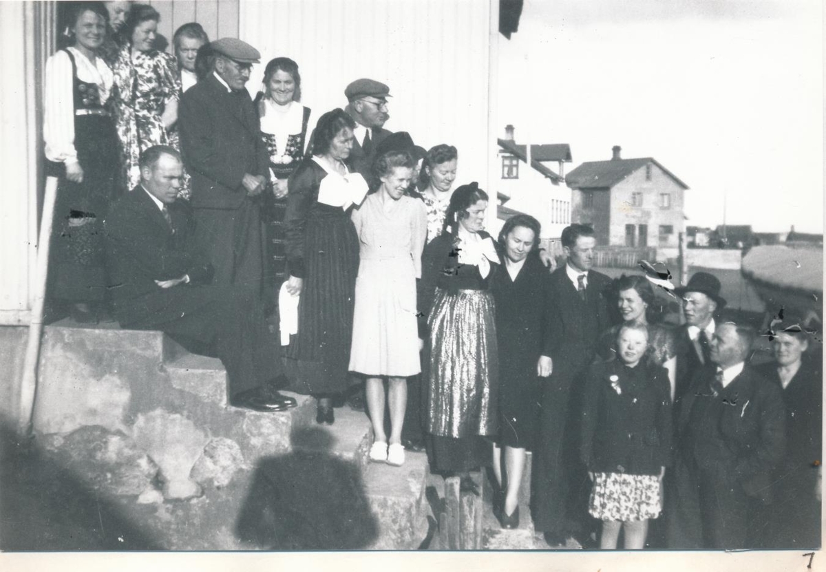 Hólmsbæjarsystur á tröppum Nýhafnar,