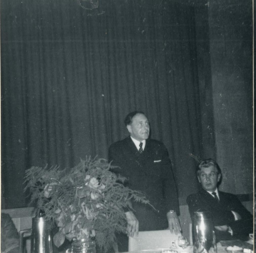 Frá vígslu sjáfvirku símstöðvarinnar í Búðardal 11. október 1972. Ásgeir Bjarnason stendur og flytur ræðu, Yngvi Ólafsson situr við hlið hans.