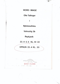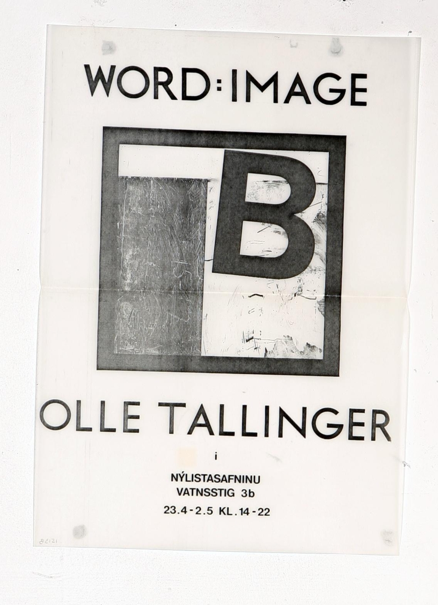 Veggspjald: vegna sýningar Olle 23.2.-2.5.1982, öll hv/ m/ sv texta en hvert veggspjald er ólíkt, fyrir miðju er mynd or bókstafur og er bretilegt. Kynningartextinn er alltaf sá sami.
