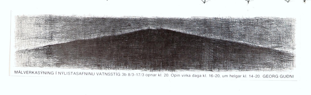 Veggspjald: vegna sýningar Georgs 8.3.-17.3., sýnir sv/hv panorama teikningu af fjalli ásamt kynningartexta.