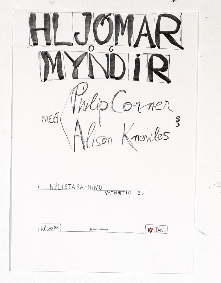Veggspjald: vegna samsýningar 17.1.1982, sýnir sv/hanskrifaðan kynningartexta á hv/grunni, enginn mynd.