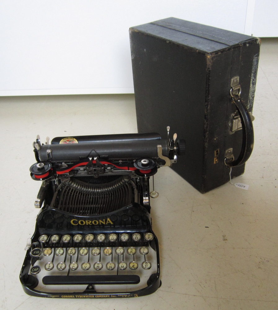 Ritvél, ferðaritvél af gerðinni CORONA í svartri tösku að stærð 28.5 25 x 11 cm. Úr dánarbúi Ingibjargar Sigurðardóttur og Guðmundar Böðvarssonar, skálds á Kirkjubóli í Hvítársíðu. Vinur Guðmundar, Sigurður Jónsson frá Haukagili, útvegaði honum þessa ritvél, og á hana vélritaði hann fyrsta bókarhandritið, sem hann skilaði frá sér með þeim hætti, en það var “Kristallinn í hylnum”.