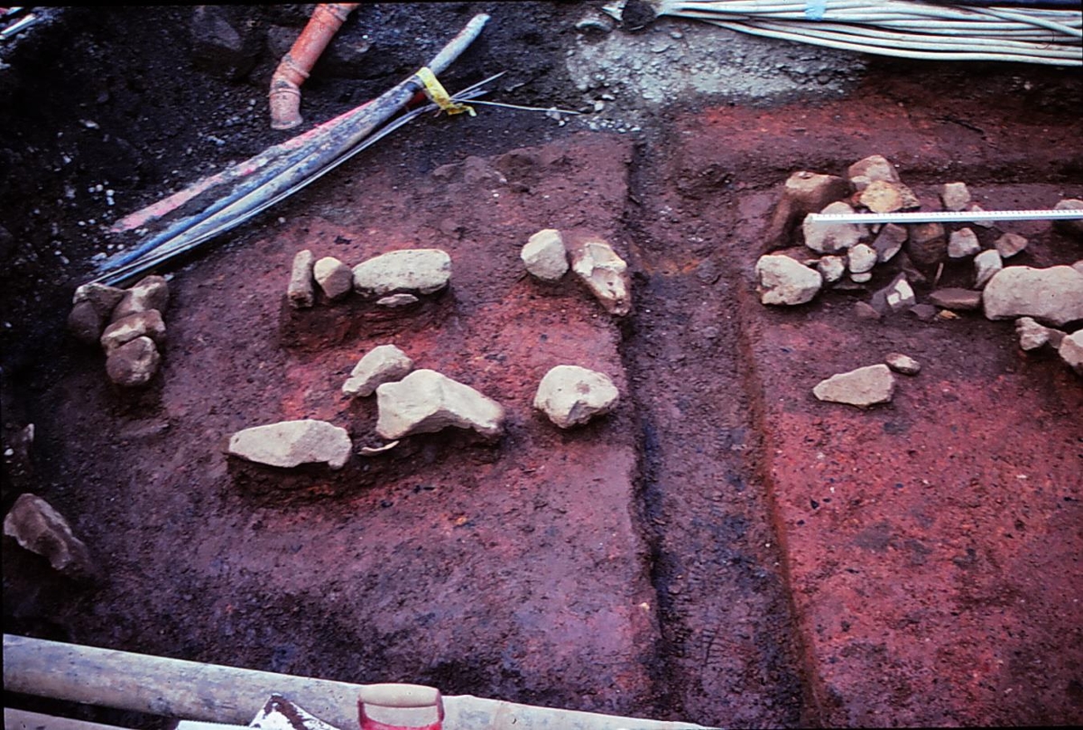 Myndin er af S/Vestur hluta svæðis U35 (H16). Þar sést í móöskulag og hleðslur. Horft til vesturs er myndin var tekin.