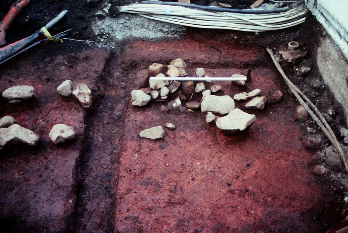 Myndin er af N/Vestur hluta svæðis U35 (H16). Þar sést í móöskulag og hleðslur. Horft til vesturs er myndin var tekin.