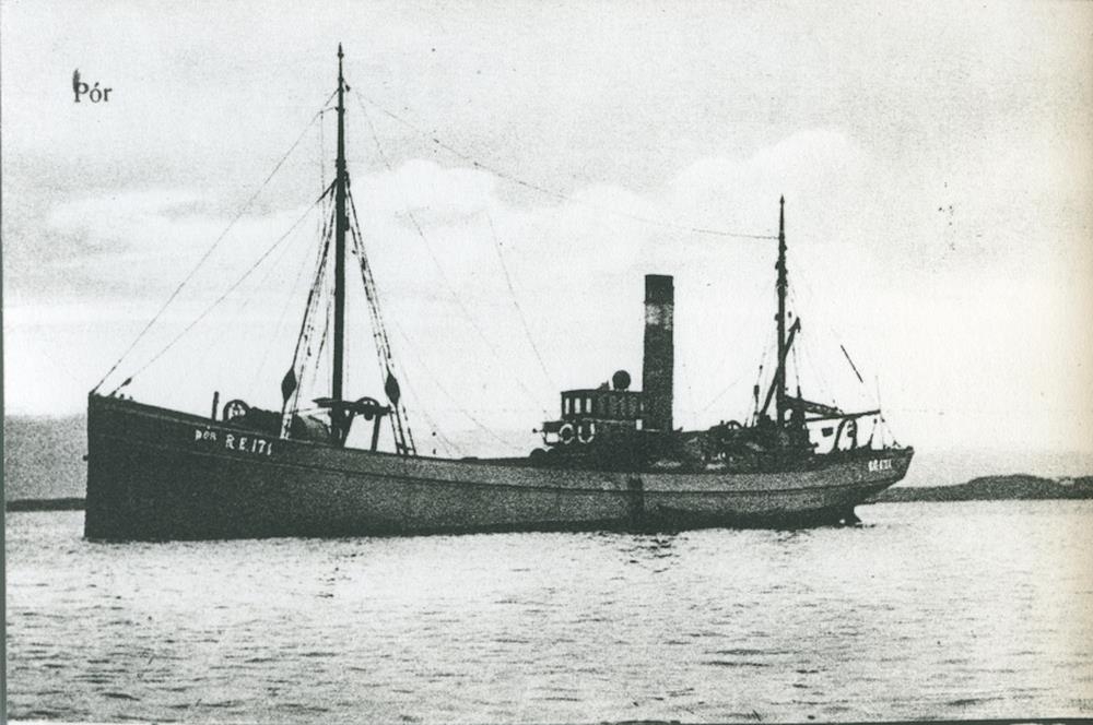 „Þór RE 171 var keyptur frá Hollandi í ársbyrjun 1916, og seldur til Frakklands síðsumars 1917. Myndin er tekin 1916. Í ársbyrjun 1917 fékk skipið viðgerð í Kaupmannahöfn þar sem meðal annars var settur á hann hvalbakur.“ (Birgir Þórisson 2014)