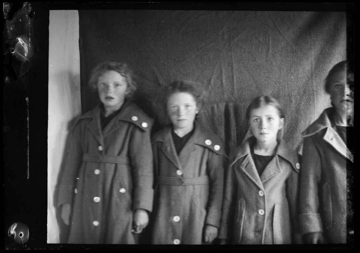 Fjórar stúlkur í kápum. F.v. Sigríður Sigurðardóttir,