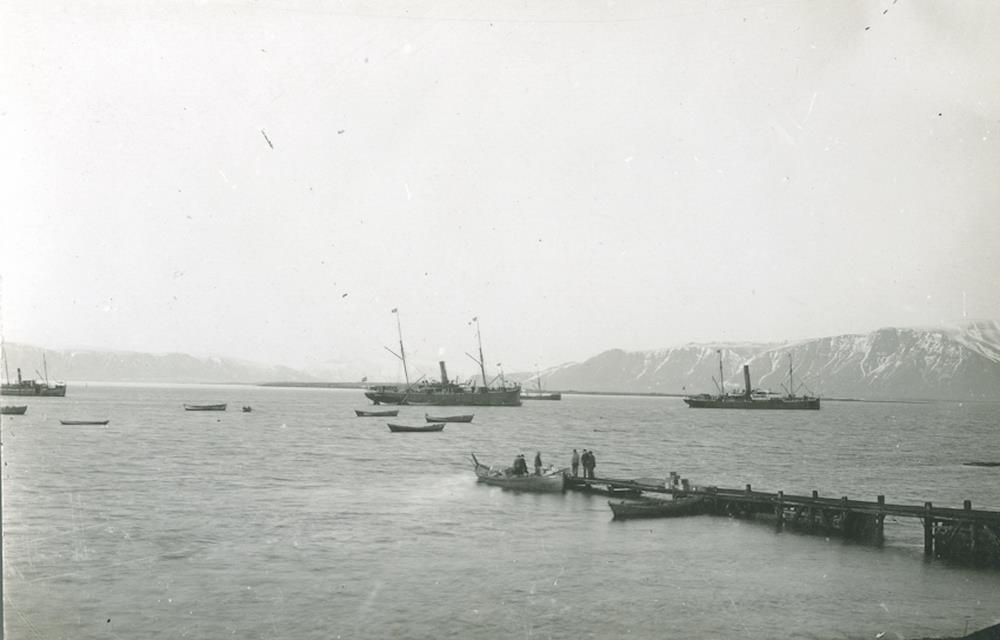 „1901-1906 líklega. Ekki öruggt, en lengst til vinstri virðist vera Faxaflóabáturinn REYKJAVÍK. Fyrir miðju LAURA frá DFDS og til hægri CERES, einnig frá DFDS.“ (BÞ 2018)
