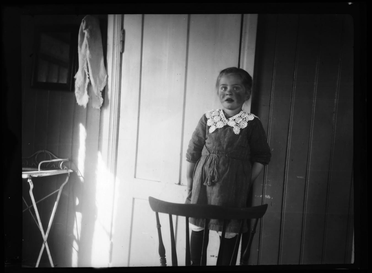 Stelpa á stól við dyr. Karín Blöndal.