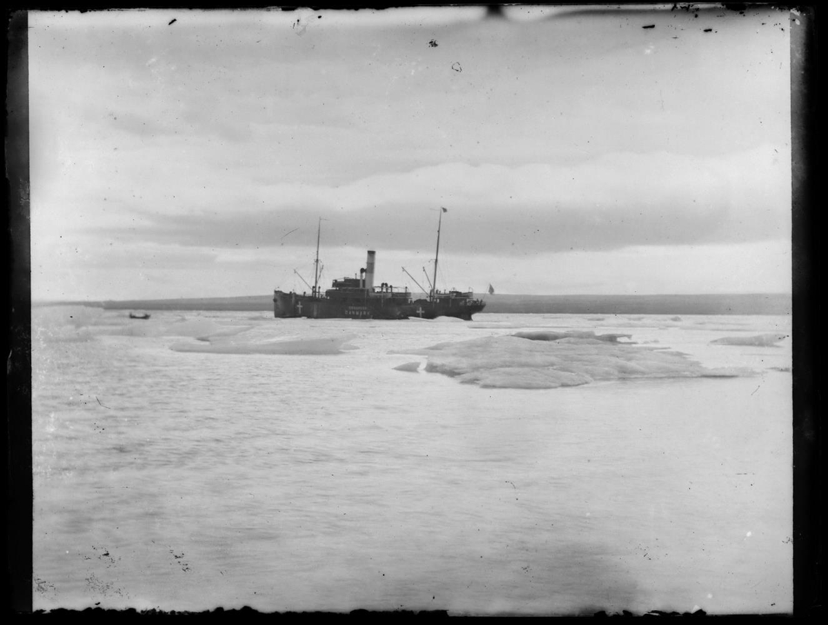 Hvammstangi. Strandferðaskip á legu á ísilögðum