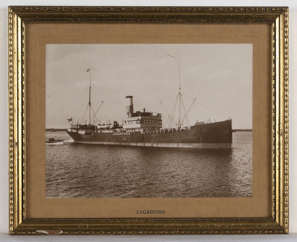 Innrömmuð mynd af Lagarfossi (I), skipi Eimskipafélags Íslands. Lagarfoss (I) var smíðaður í Danmörku 1904 en gerður út af Eimskipafélaginu frá 1917 til 1949. Ekki kemur fram á skráningarspjaldi hvort myndin er í lit eða svarthvít.