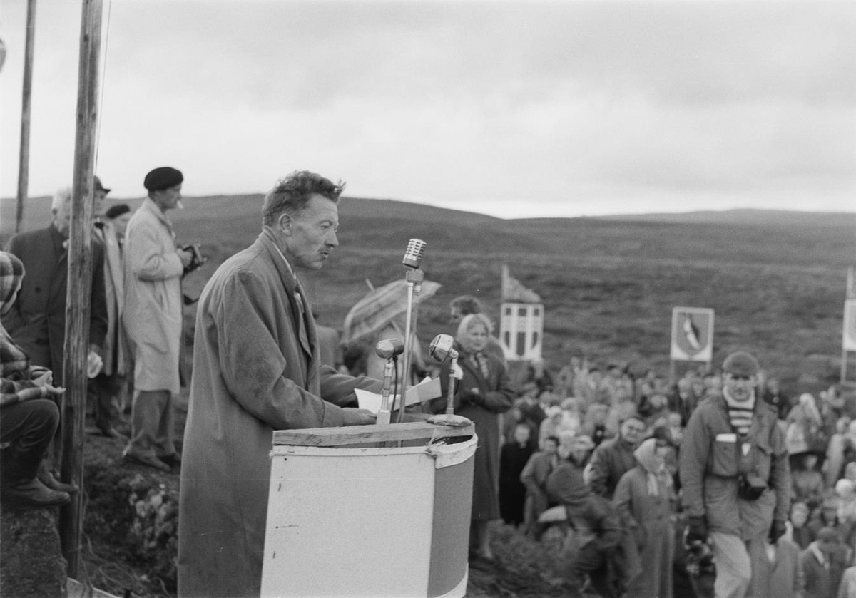 Myndir frá stofnfundi Samtaka hernámsandstæðinga á vesturbakka Almannagjár á Þingvöllum í september 1960.