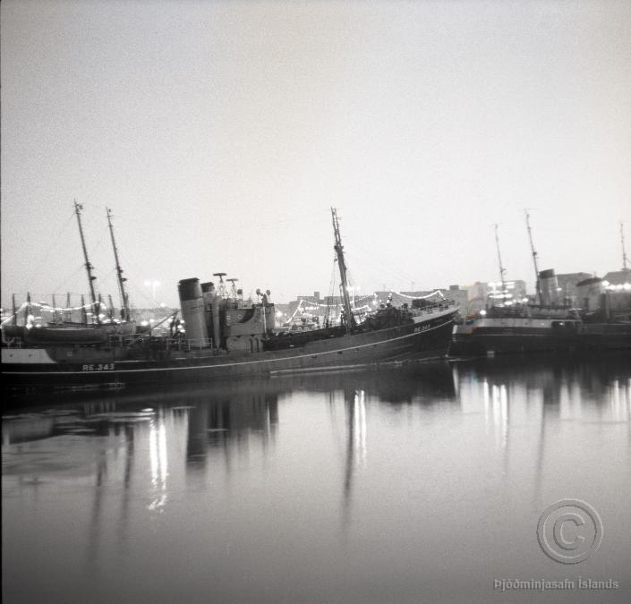 31. des. 1961, Gamlárskvöld, Reykjavíkurhöfn frá Grandagarði.