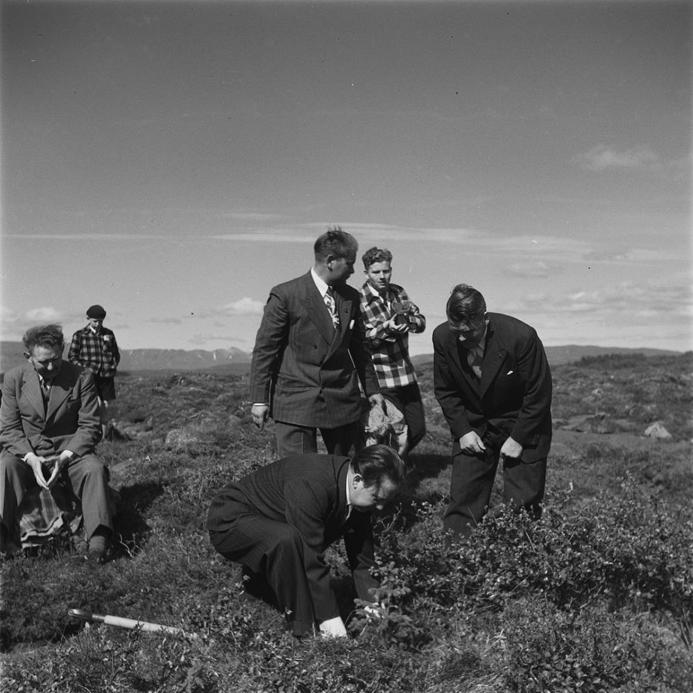 Gunnar snyrtir jarðveg eftir skóflustungu