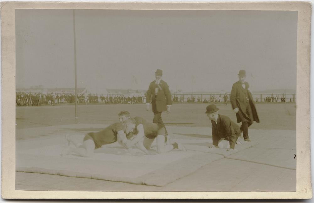 Einarsson frá Kerlingardal glíma grísk-rómverska glímu á Melavellinum.