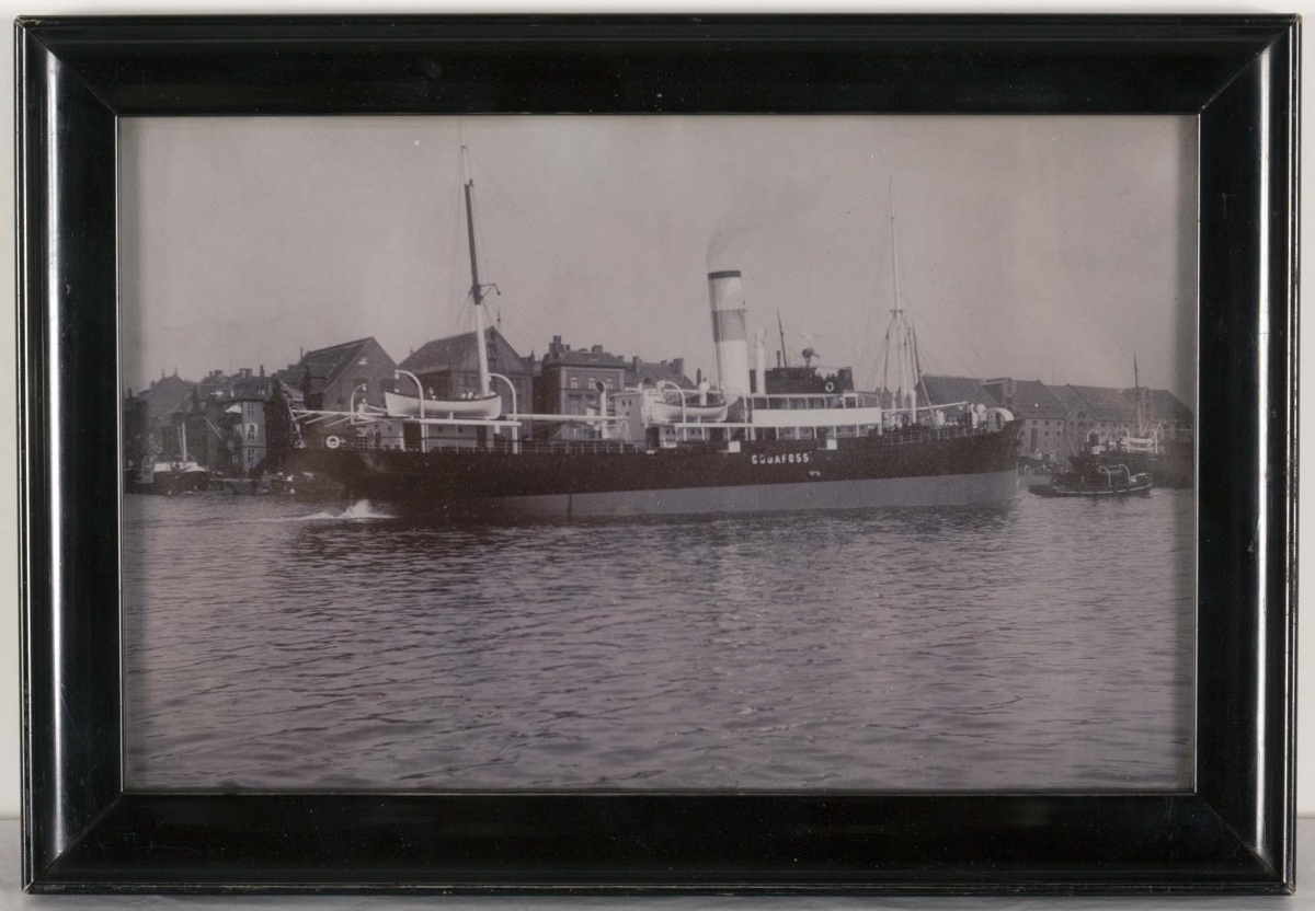 Innrömmuð ljósmynd af farþega- og vöruflutningaskipinu Goðafoss. Myndin er úr búi Halldórs Þorsteinssonar skipstjóra og útgerðarmanns frá Háteig í Reykjavík (1877-1966). Halldór var faðir gefanda.