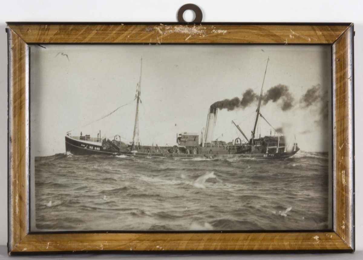Svarthvít ljósmynd af togaranum Otur RE 245. Myndin er í ljósbrúnum tréramma með gleri og tekin á tímabilinu 1922-1938. Otur var gerður út frá Reykjavík 1923 til 1938.