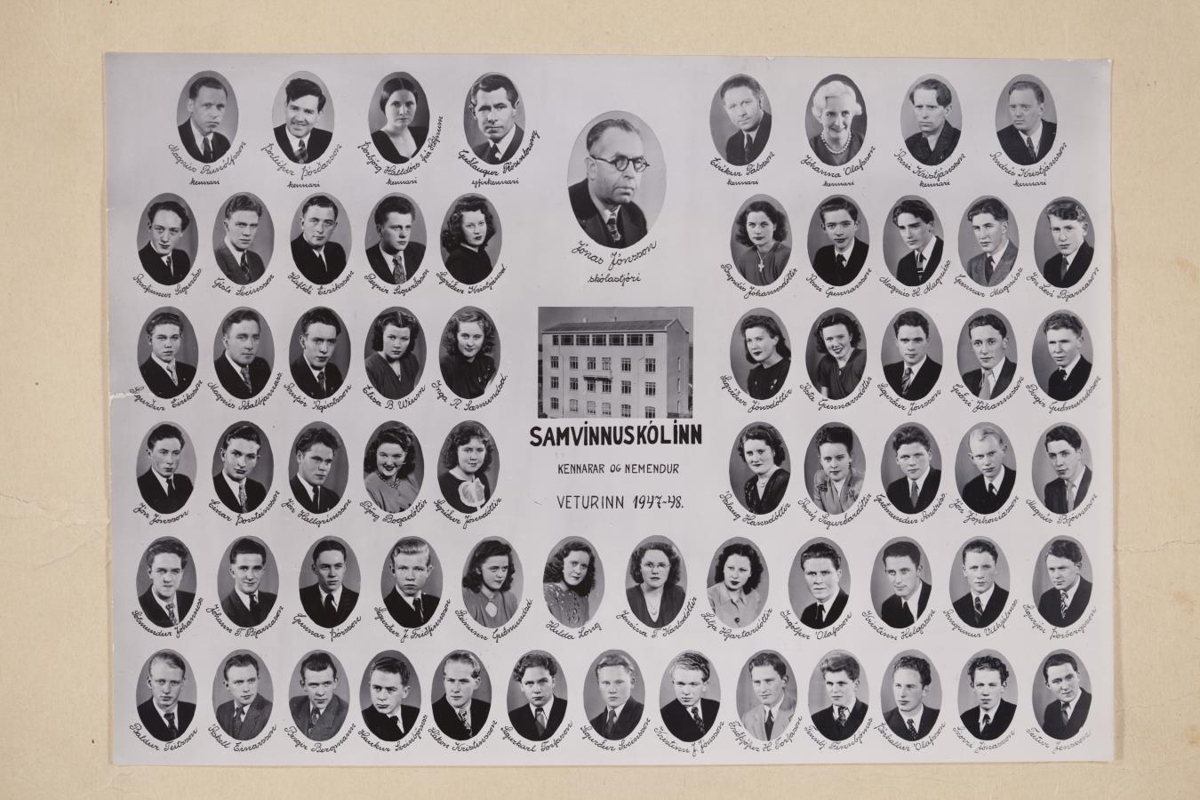 Samvinnuskólinn Bifröst. Myndir af kennurum og nemendum veturinn 1947-1948.