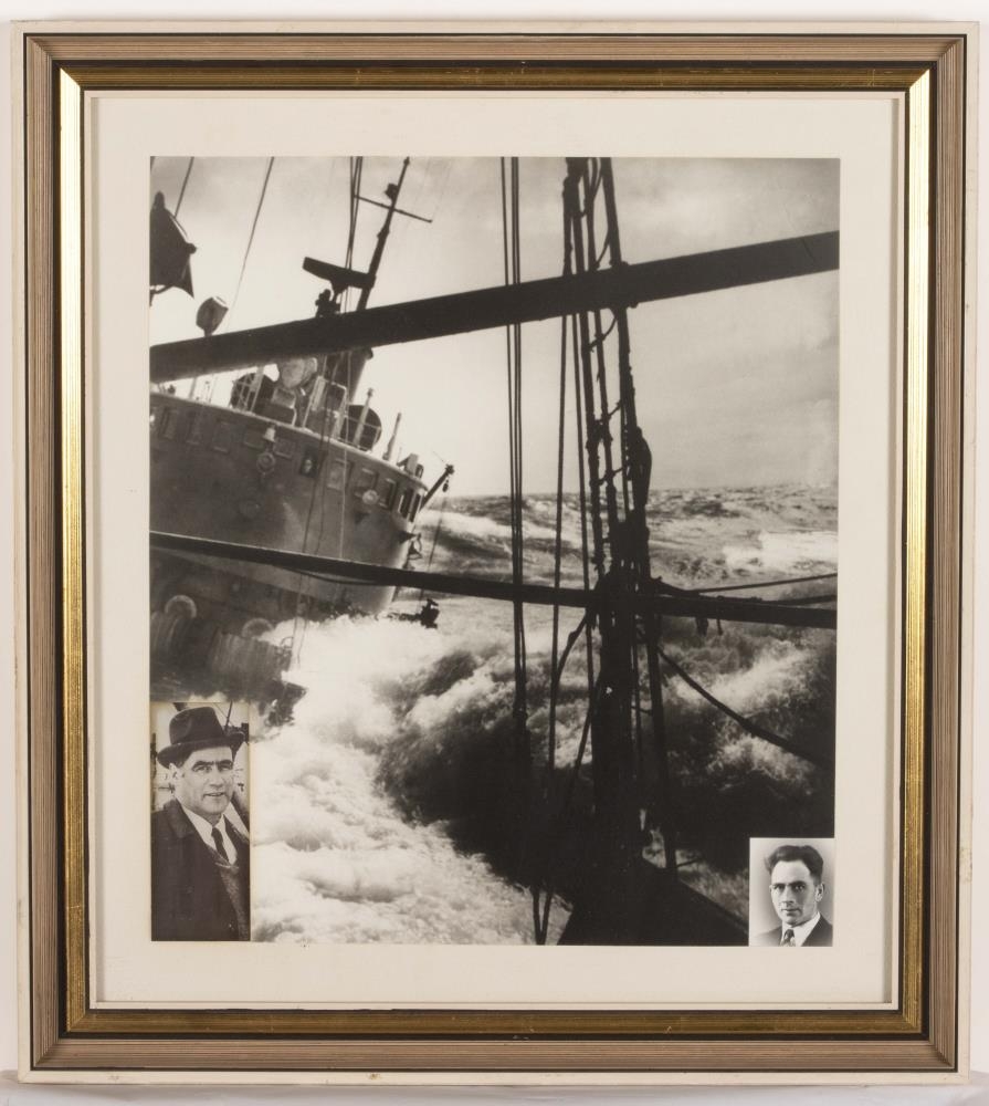 Innrömmuð ljósmynd af togara (nýsköpunartogara), sennilega frá Bæjarútgerð Hafnarfjarðar. Mannamynd er í sitthverju horni rammans. Aftan á myndina er skrifað MARK 40. „Mynd: Þorsteinn Eyjólfsson skipstjóri, Hraunstíg 7, Hafnarfirði.“; Kennitala hans er 1109067069. Þorsteinn býr nú, 2006, á Skjólvangi, Hrafnistu í Hafnarfirði.
